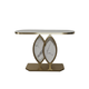 The tabletop showcases a smooth marble-look surface that adds timeless charm and visual richness. Its elongated profile makes it ideal for displaying décor items such as vases, sculptures, lamps, photo frames, books, or floral arrangements. The surface is easy to clean and designed to maintain its premium appearance over time.