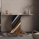CONSOLE329 features a bold circular metal base with a floating sphere accent, delivering an artistic luxury statement for modern interiors.