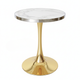 The table is supported by a strong gold-finished stainless steel base, designed in a modern geometric style that provides excellent stability and visual appeal. The corrosion-resistant stainless steel construction ensures long-lasting durability while maintaining its luxurious gold shine over time.